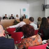 La mesa de la Asamblea estuvo constituida por el decano del ICOFCV, Josep Benítez; por el secretario general, José Casaña; por la delegada de Alicante, Ana Lázaro; por el delegado de Castellón, Jesús Ramírez; y por la delegada de Valencia, Laura López, quien hizo de moderadora de la misma.