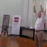 José Ángel González impartió durante más de una hora un ameno taller sobre higiene postural y escuela de espalda, elaborado conjuntamente con la profesora María José Llácer (Universidad de Valencia), en el que participó el medio centenar de asistentes. El público, entre el que estaban las citadas autoridades, tuvo ocasión de poner en realizar algunos prácticos ejercicios así como participar en un debate final al respecto.