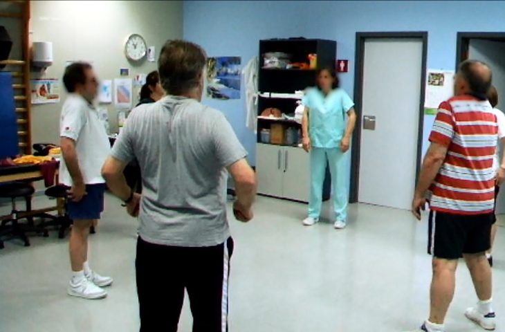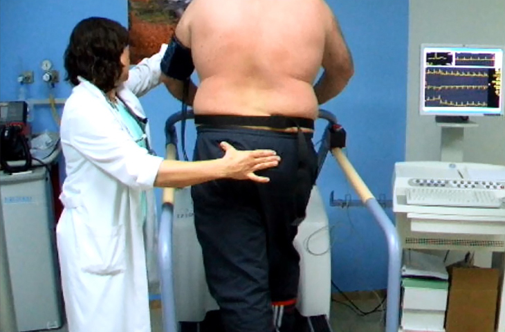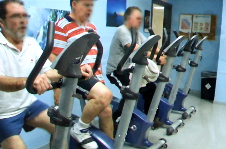 “Las sesiones contemplan una primera parte de calentamiento, donde se realizan ejercicios suaves con diferentes elementos, como por ejemplo bandas elásticas, balones medicinales o colchonetas, entre otros. Tras esta fase de preparación, se hace un entrenamiento en cinta de correr o bicicleta estática durante 30-40 minutos, modificando parámetros de velocidad, inclinación y resistencia según el criterio del fisioterapeuta, para poder observar cómo se comporta el corazón ante los esfuerzos, y si se consigue un pico de frecuencia cardíaca de entrenamiento y una buena recuperación cardíaca. Finalmente, es necesario un enfriamiento con estiramientos de grandes grupos musculares, sobre todo de miembros inferiores (cuádriceps, gemelos, isquiotibiales, etc), que son aquellos que más se han trabajado en la parte aeróbica”.