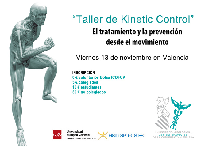 El Colegio de Fisioterapeutas de la Comunidad Valenciana ha puesto en marcha un nuevo seminario en colaboración con la Universidad Europea de Valencia y Fisio-sports.es. El seminario es un Taller de Kinetic Control que tendrá lugar este viernes 13 de noviembre por la tarde en la sede la UEV.