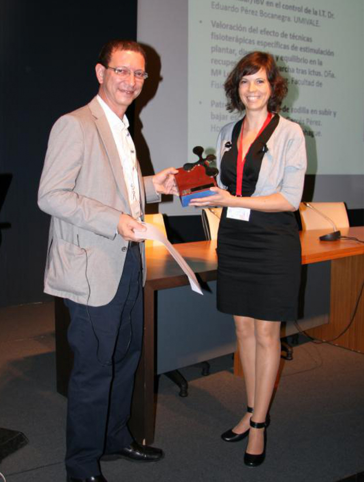 El Instituto de Biomecánica (IBV) ha concedido el IX Premio IBV de Valoración Funcional a un caso clínico presentado por nuestra colegiada María Luz Sánchez, profesora del Departamento de Fisioterapia de la Universitat de València. El caso clínico galardonado ha sido “Valoración del efecto de técnicas fisioterápicas específicas de estimulación plantar, disociación y equilibrio en la recuperación de la marcha tras ictus”.